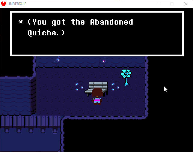 inside of this room, you'll find a neat bit of flavor text, and the "abandoned quiche".