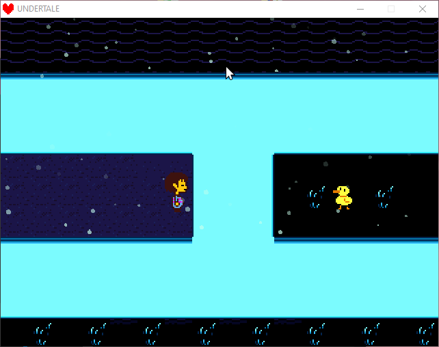 once you hit the room with the grass, undyne will catch up with you and try to capture you, but she'll grab the kid we saw earlier in waterfall instead