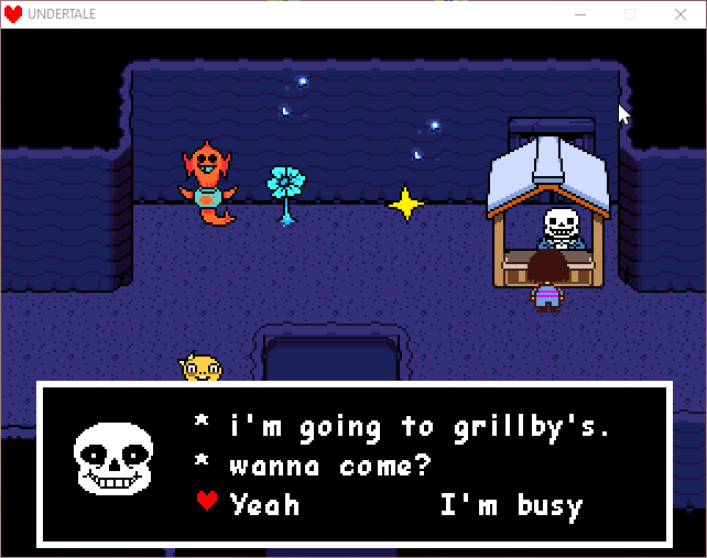 in here you'll have the option to hang out with sans back in snowdin, but for the sake of covering as much of waterfall as possible, I am going to skip the