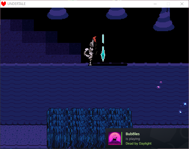 next we have a really close call, with undyne catching us hiding in the bush (ignorze the steam notification, it got caught in my screenshot!!!)